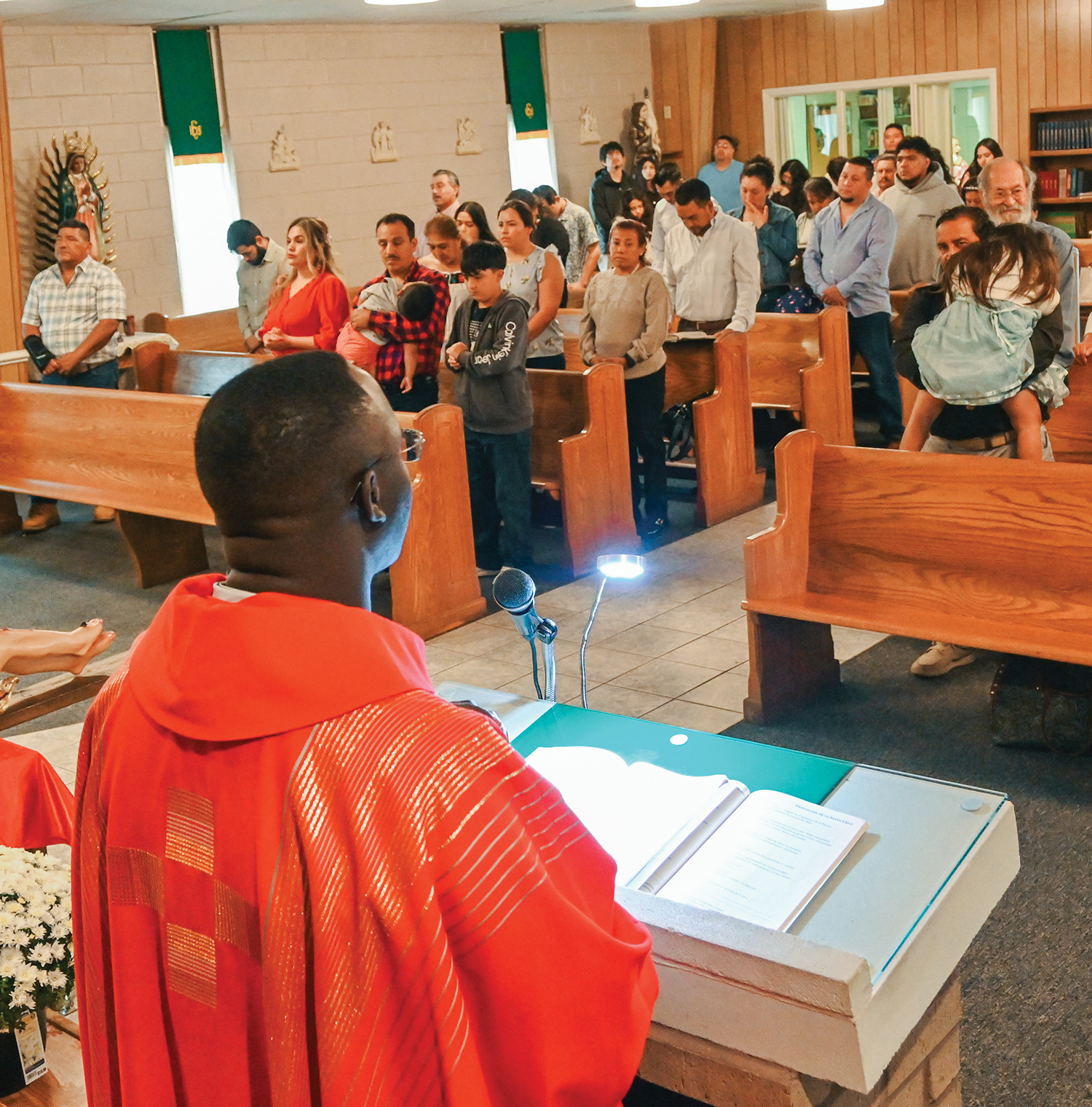 Latinos represent the majority of parishioners at St. Joan of Arc, which includes an outreach ministry to migrant workers at a seafood plant about an hour away from Plymouth. The parish community also includes Anglos and Asians, mainly from the Philippines.