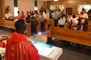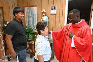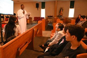 Thao, nacida en la zona en una familia de inmigrantes filipinos, también es secretaria del consejo parroquial. Ella destaca que el padre Cavine “aporta nueva energía a la parroquia”. Por ejemplo, en preparación para las clases de educación religiosa de este otoño, el padre Cavine se reunió con los catequistas y les ofreció una orientación sobre qué esperar de la formación y qué deben hacer para alcanzar esos objetivos. Y el primer día de clases, habló a los estudiantes y padres de familia sobre la importancia de los sacramentos para nosotros como católicos. El grupo, compuesto por unos 17 estudiantes y padres, incluía anglos, asiáticos y, en su mayoría, latinos.